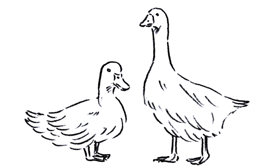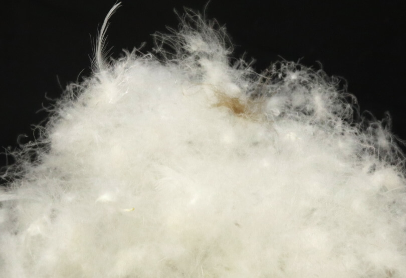 ダウン(羽毛)とは、水鳥の胸の部分に生えている羽根のことをさします。軽くて保温性が高く、湿気を放出する機能も備えているダウンは、通称「ダウンボール」とも言われます。水鳥一羽からあまり採れない貴重なものでもあります。陸鳥には存在せず、体温を奪われやすい水辺に棲む水鳥にしか生えません。製品の材料となるダウンは、主にグース(がちょう)とダック(あひる)という2種類の水鳥から採集したものになります。グースのダウンは大きく、繊維が細く柔らかいため保温・吸水性に優れているのに対して、ダックのダウンは硬く弾力性があるので回復力も高く、張りを持たせたいときに使用します。