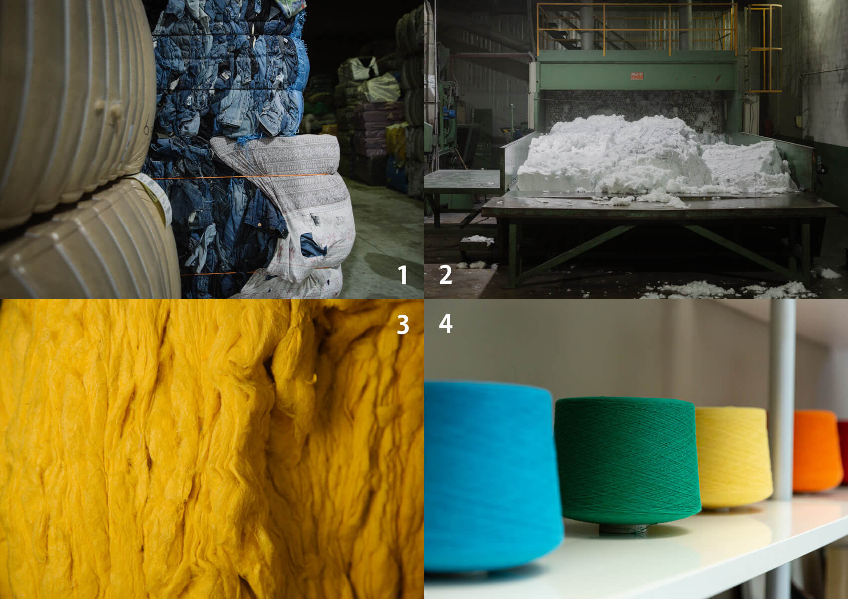ファイバーを紡績して、糸にし、 品化をし、不要になったら再利用する