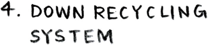 NANGAでは、海外より輸入した高品質原毛を、国内の羽毛加工メーカーで洗浄加工し製品化しています。製品はタウンからアウトドア全般で使われ、正しくメンテナンスすることでより長く使用することができます。使い古されたダウンは、リサイクルプロジェクトを利用して新たな商品として再生されることも。ここでは、NANGAが推奨するダウンの循環を4つのパートごとに紹介していきます。