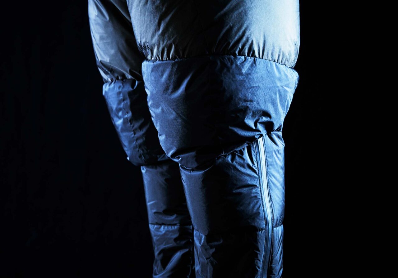 最高峰のスリーピングバッグ「レベル 8」のノウハウを、ダウンジャケットに転用したのが「レベル 7」というウエアラブルスリーピングバッグシリーズ。つまりは、“着る寝袋”です。低山キャンプ向けの着る寝袋ではなく、行動が主ではない高所登山のベースキャンプや、極寒地でのクライミングをする際にビレイヤーが使用することを想定したアイテムとなっています。